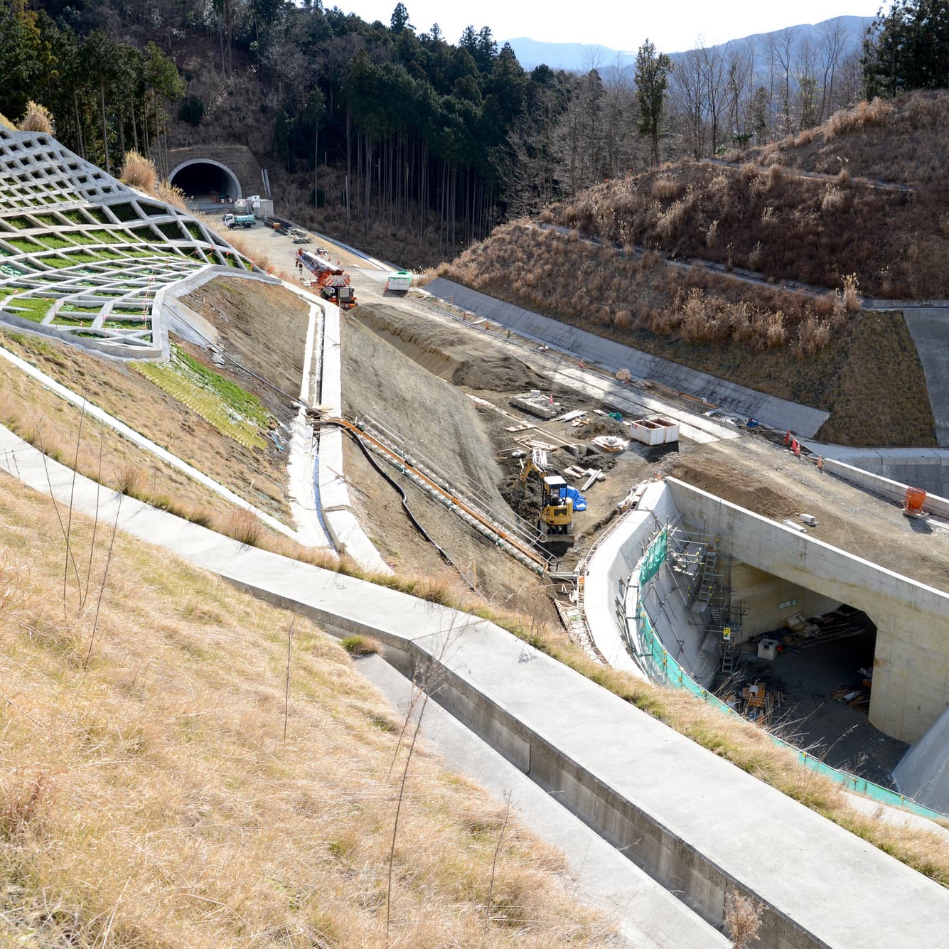 道路工事・造成工事・コンクリートダム工事・水路工事・舗装工事等、造園業のお客様にはなじみがないように聞こえる事業ですが造園らしく曲線を描き、土木らしくの直線を描けることも当社の売りになり官公庁の工事はもちろん法人の営繕についても特にご利用いただいております。