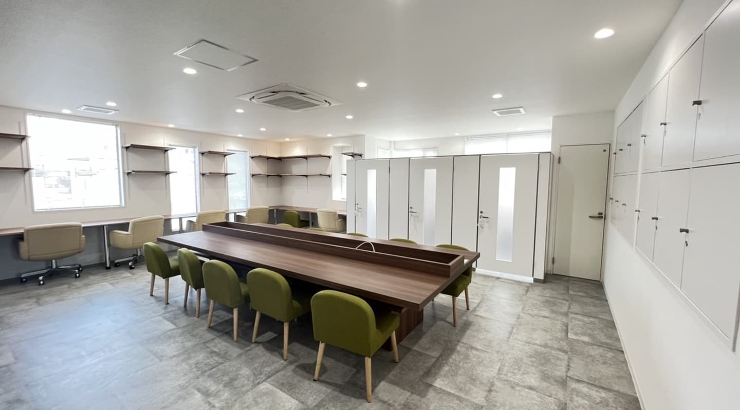 大事な来客対応や、お仕事のミーティングには、会議スペースも完備しております。レイアウトの違う2つの会議室を用意することで用途に応じて利用していただけます。さらに、可動壁面を採用しておりますので2つの会議室を1つにすることも可能となり、大規模な会議も実現可能です。